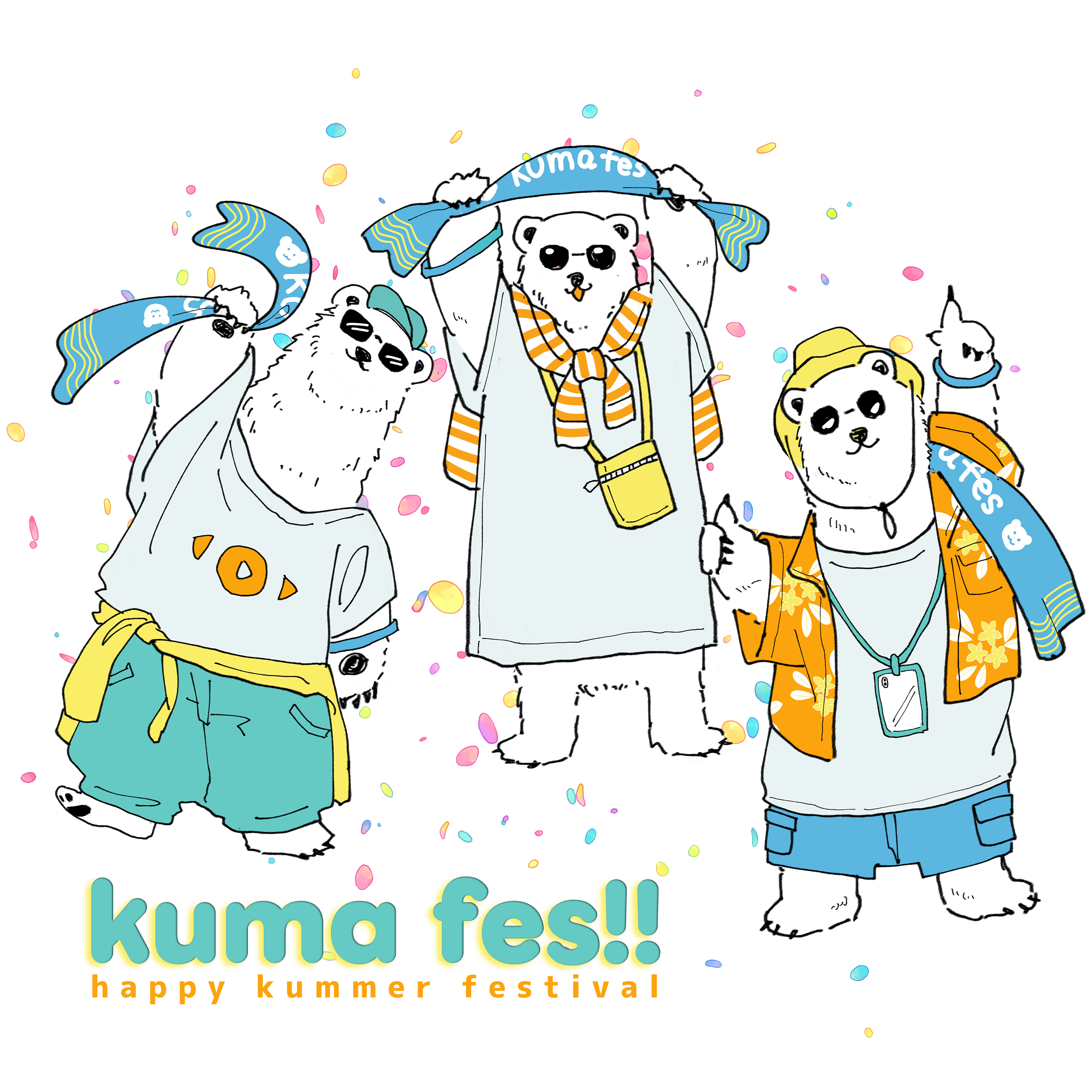印刷会社キンコーズさんのTシャツコンペに向けて制作したデザインの1つ目。夏フェスを全力で楽しむシロクマたちのファッションがユニークな作品です。